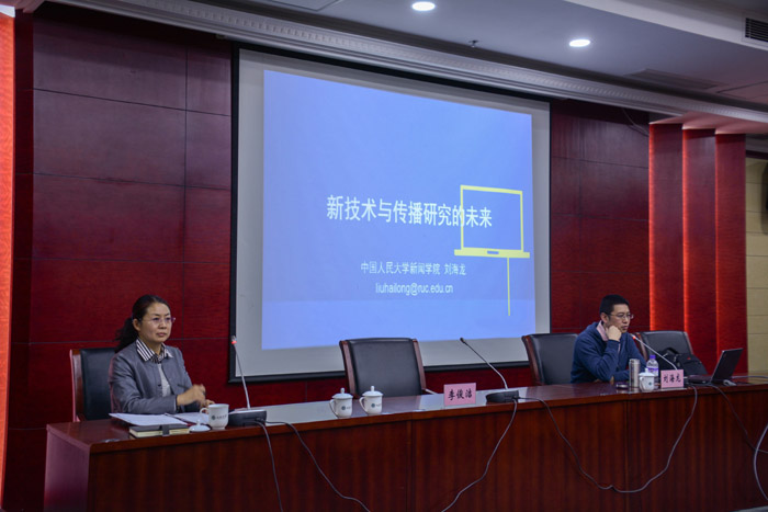 2018年4月10日下午2点半,应leyu乐鱼·官方web站登录入口邀请,中国人民大学刘海龙教授在山西大学会议中心第三会议室作了题为“新技术与传播研究的重新定位”学术讲座。讲座由新闻学院党委书记李俊洁主持,《编辑之友》杂志社主编康宏、副主编吕晓东和王介平、新闻学院师生100余人参加了讲座。