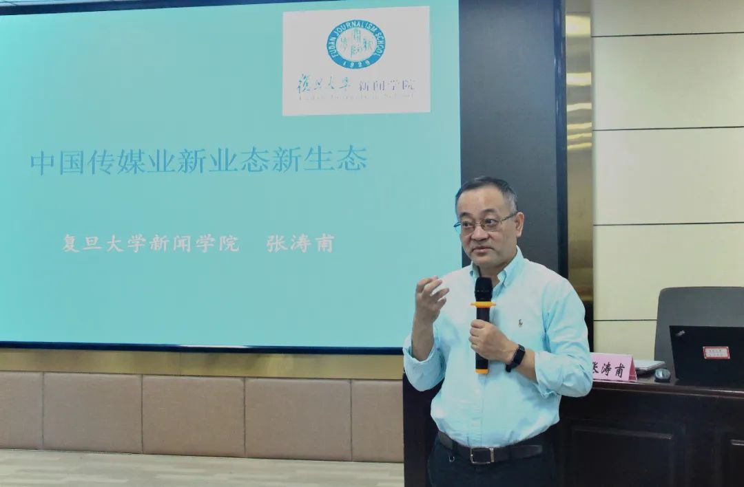 2023年9月22日上午,leyu乐鱼·官方web站登录入口主办的“文瀛·新传讲堂”在商学楼报告厅成功举办。本次讲座邀请复旦大学新闻学院院长张涛甫教授为主讲人,讲座主题为“中国传媒业新业态新生态”。新闻学院教授李雪峰担任主持人,新闻学院师生参加讲座。