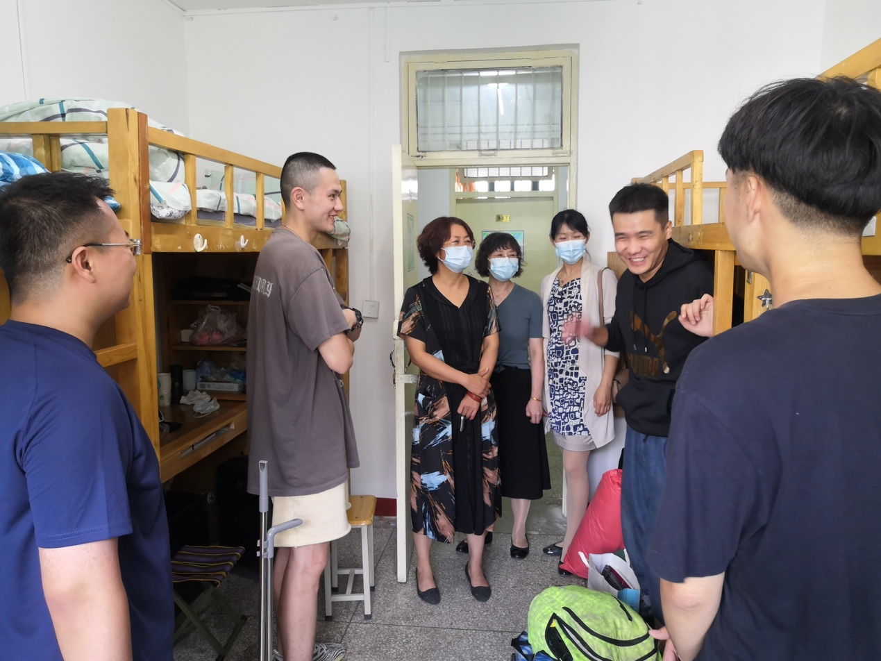 上午十时,学院党委书记李俊洁、党委副书记邢雅娟来到迎新现场了解新生报到情况。 下午三时,辅导员魏润南老师陪同学院党委书记李俊洁、院长庞慧敏及党委副书记邢雅娟走访新生宿舍,了解新同学的生活日常,与新同学亲切交谈。
