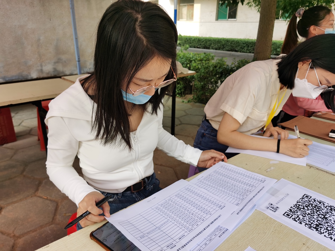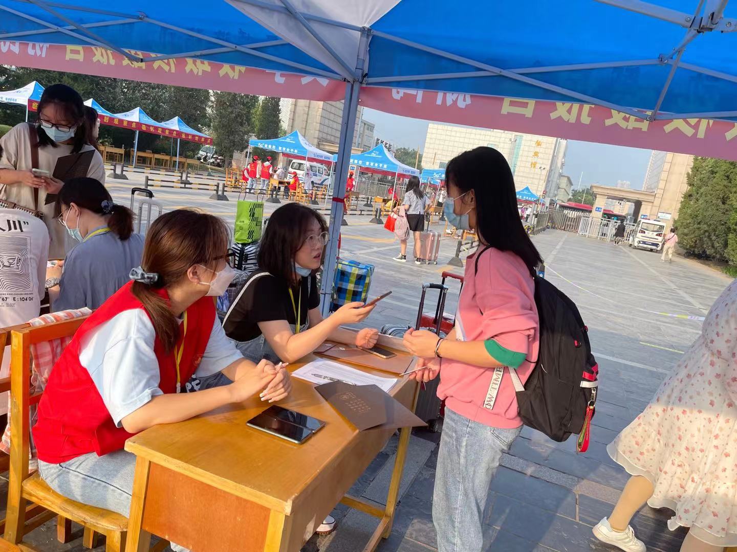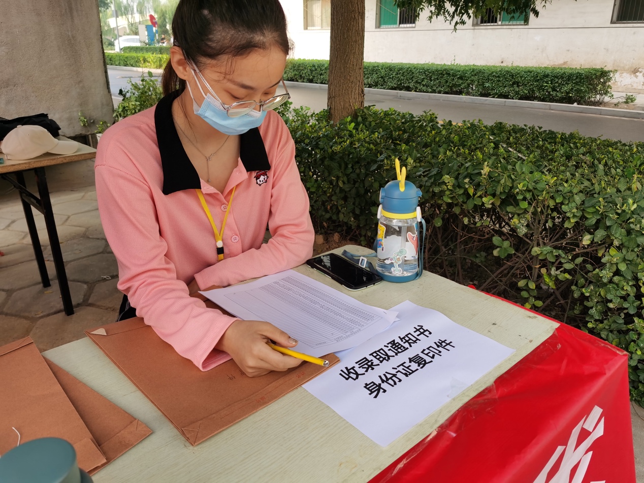 学长学姐们接过新同学的录取通知书、档案转交材料,党团关系转接材料。认真核对同学们的学历信息、个人信息,为每一个新同学发放体检表、校园一卡通。