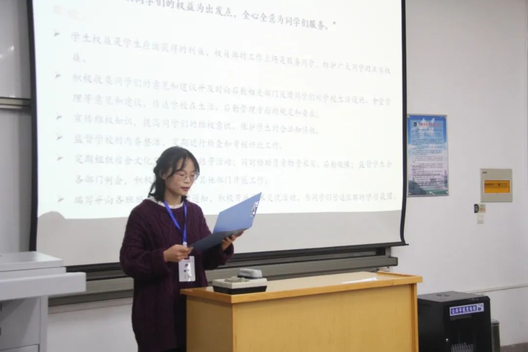 大会第二项,各部门部长依次对部门工作进行回顾总结,同时部员们也上台进行了自我介绍。自我介绍环节轻松愉快,生动有趣,充分展示了学生会各位成员的精神风采,现场气氛活跃。