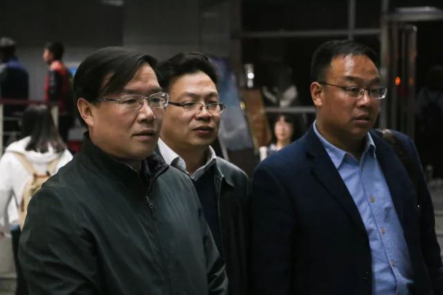 山西大学党委副书记丁耀武、党委办公室副主任李苏林、新闻学院党委副书记韩书保欣赏摄影展优秀作品
