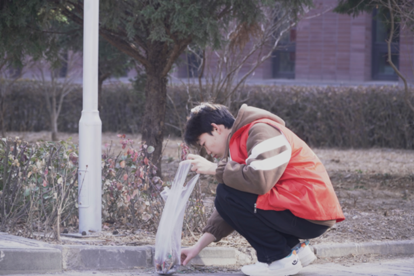 春光和熙,微风轻拂,校园内出现俯身捡拾的身影。为响应“3·5”雷锋日的号召,3月5日和6日,新闻学院青年志愿者协会在午后组织开展了校园美化活动。