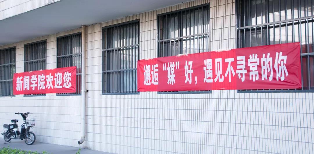 学院门口“邂逅‘媒’好 遇见不寻常的你”和“新闻学院欢迎您”的横幅,更是让新生及新生家长们感受到了新闻学院的热情与温暖。