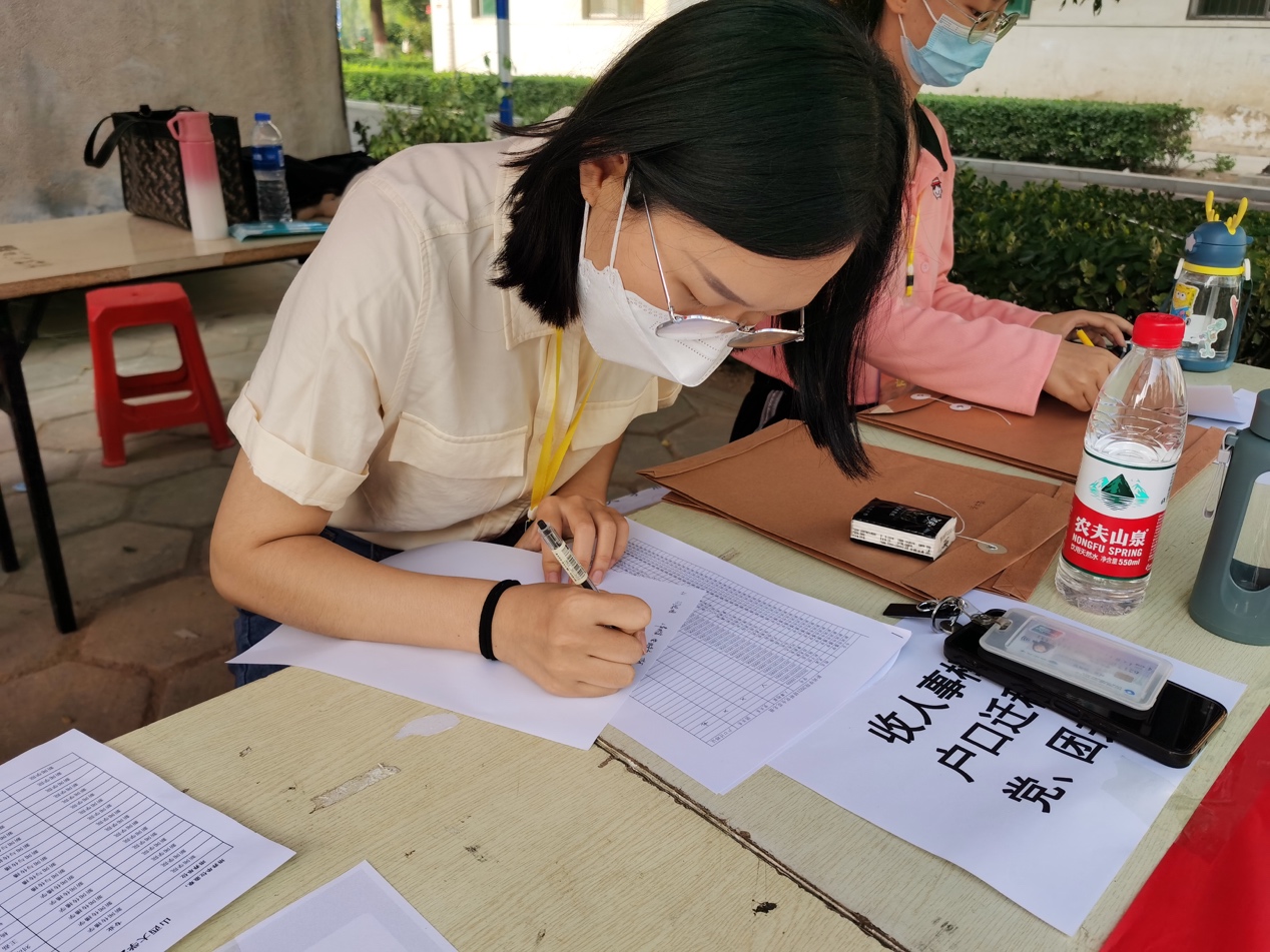 学长学姐们接过新同学的录取通知书、档案转交材料,党团关系转接材料。认真核对同学们的学历信息、个人信息,为每一个新同学发放体检表、校园一卡通。
