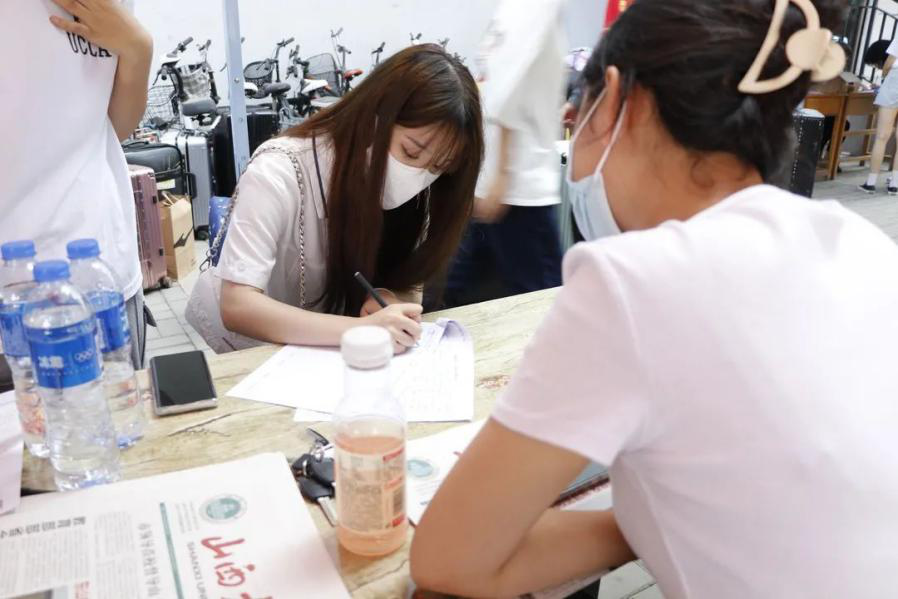 今年依旧是抗击疫情不可松懈的阶段,为防范新冠疫情,迎新的相关工作人员全程佩戴口罩,在学校西门学院迎新处以及新生宿舍楼下耐心等待,为新生提供最大的便利。