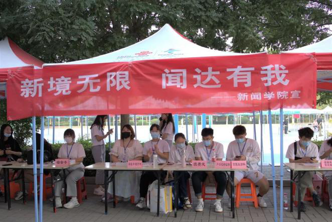 早晨6:30,迎着初升的太阳,新闻学院迎新工作人员抵达迎新地点,开始迎新的准备工作:搭建帐篷、摆放桌椅、准备迎新资料……等待着新生们的到来。