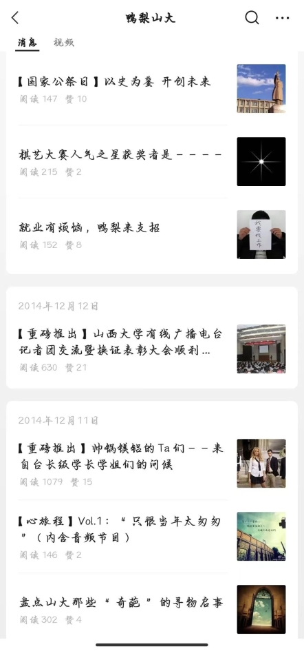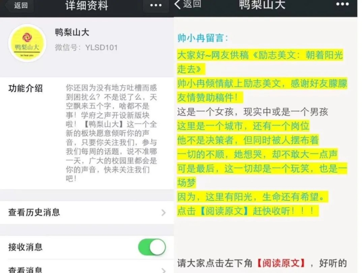 鸭梨山大公众号,也就是山西大学有线广播电台学府之声公众号,2014年由我组织成立并开始运作。
