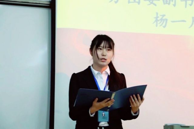 继任超同学的讲话后,新闻学院学生会主席杨一凡同学上台发言,表达对到场老师同学的感谢。她将学生会定位为服务型、奉献性组织,要求学生会各成员端正入会动机,要求加强对学生会成员的素质培养,注重内涵建设素质建设,真正提高工作效率。