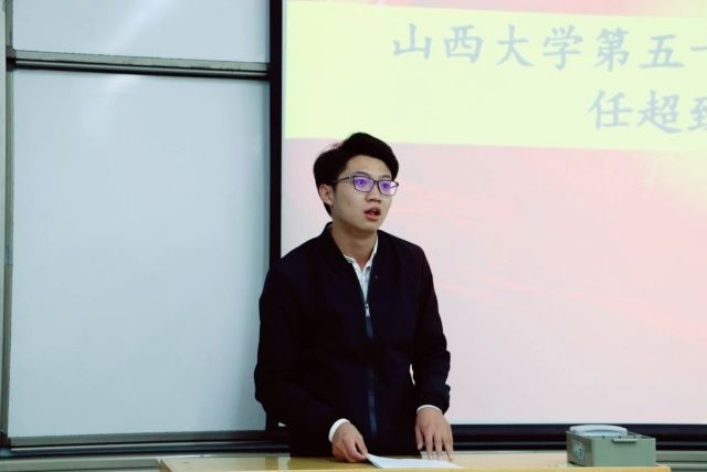 各部长发言结束后,山西大学学生会主席任超同学上台发表贺词,并要求各学生干部发挥自身职能,帮助同学服务同学,开展校园正能量活动,丰富校园文化。他表示在未来要加强校学生会与新闻学院学生会之间的联系,互通有无,共同进步,一同为学生事业的发展作出贡献。